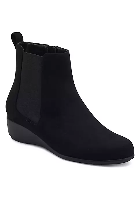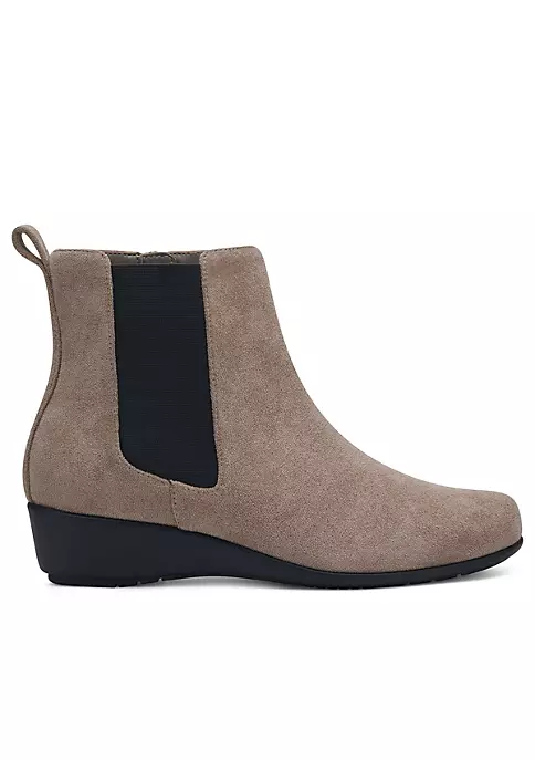 Weatherproof suede adds practicality to a quintessential style of the season: the Alisa ankle boot. A low heel adds just the right amount of height with comfort to spare. A go-everywhere essential. 1 1/2″ Heel Height. Suede Upper, Balance Synthetic Materials.