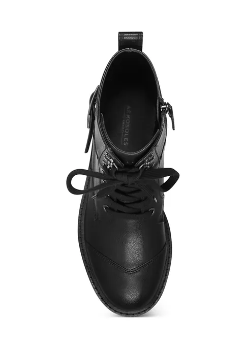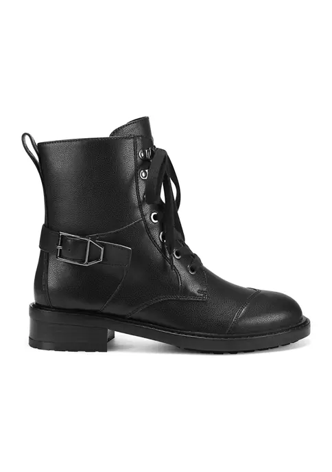 Toughen up a soft, flowy long skirt with the Annie lace-up ankle boots, accented by buckle hardware. Equally chic with a favorite pair of jeans or sleek leggings, it’s a versatile style essential all season long.