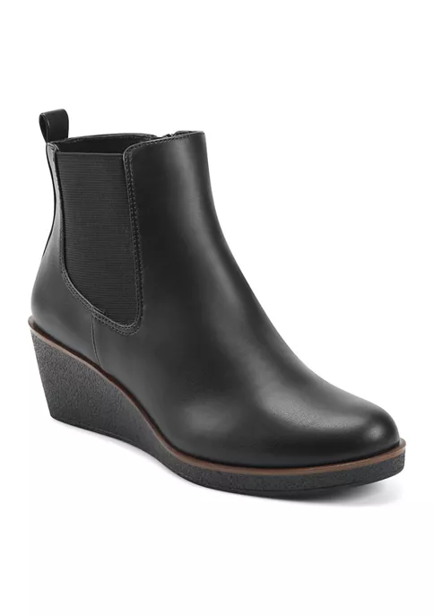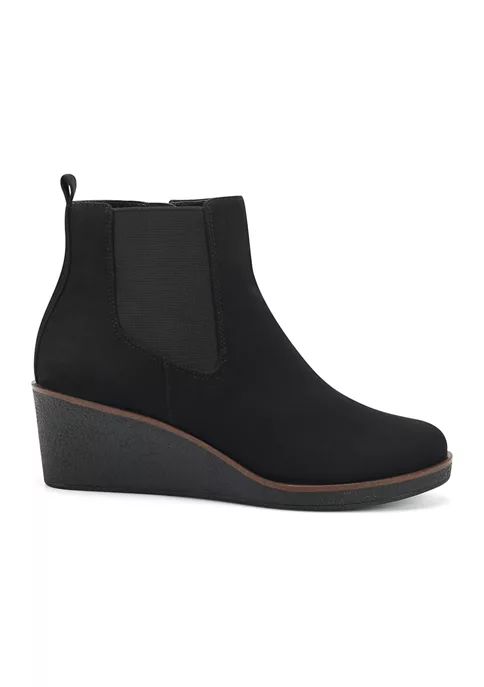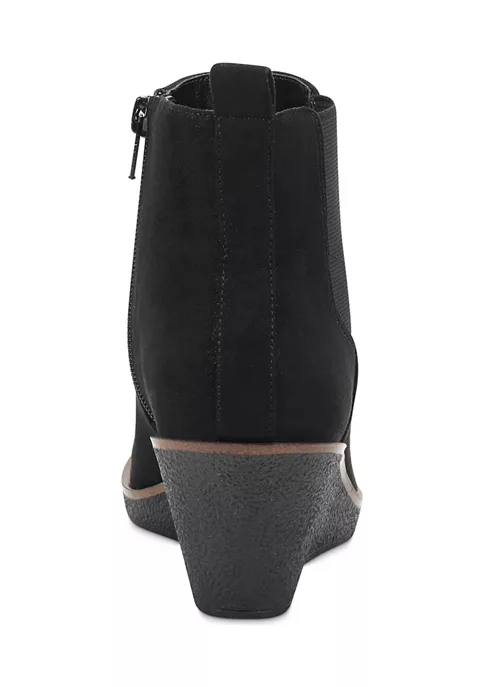 A wedge with an edge: the high-enough yet walkable heel adds endless versatility to the Brandi ankle boot. You’ll wear it everywhere, from your commute to the office and all weekend long. Finished with a zipper closure and goring on the sides. 2 1/4″ Heel Height. Synthetic Upper, Balance Synthetic Materials. Heel Rest Technology