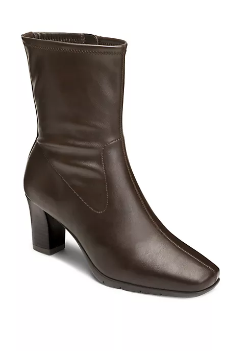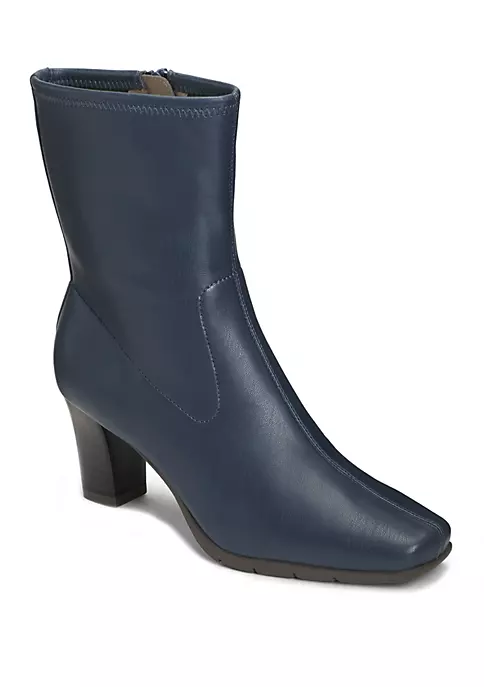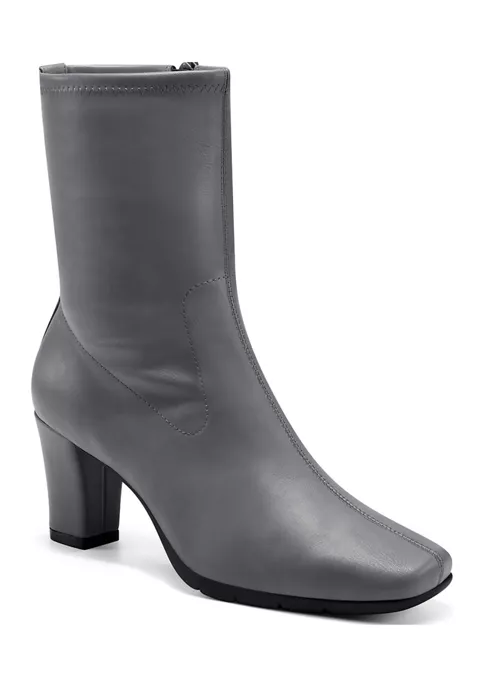 A must-have boot for Fall, with a square toe and stacked heel. Pair this style with jeans and a soft sweater for the weekend or tailored pants for the work week. Features a zipper closure for easy on and off. 2 ¾” Heel. Synthetic upper and materials. Heel Rest Technology.