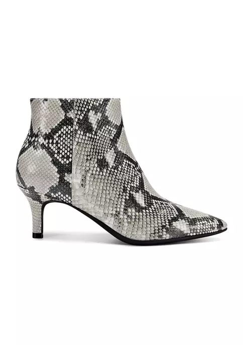 A fresh twist on a classic style. With its pointed toe and 2 1/2” heel, this leather bootie has a striking silhouette and no shortage of attitude. Slip it on to add polish and poise to any outfit. 2 1/2″ Heel Height. Leather Upper, Balance Synthetic Materials. Heel Rest Technology. Removable Footbed.