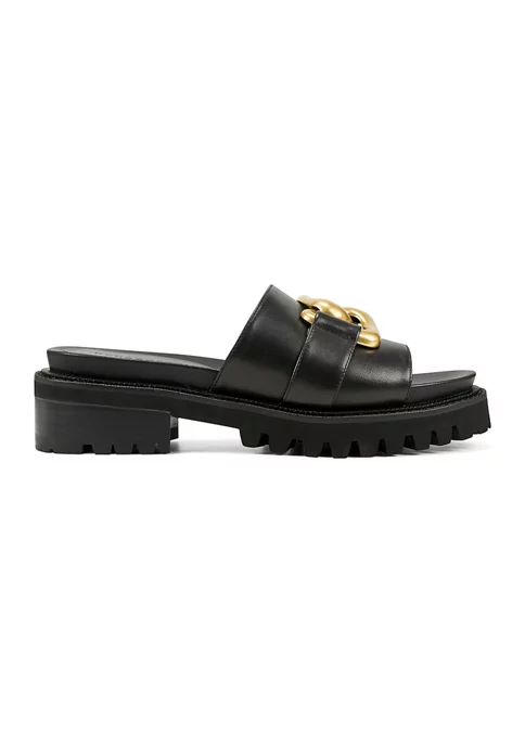 Perfectly polished: bold buckle details make a dramatic style statement on the Lima slide sandal. Sturdy lug soles do double duty, adding an on-trend touch while enhancing the comfort factor. Versatile enough to pair with everything from slim pants to soft, flowy dresses and skirts.