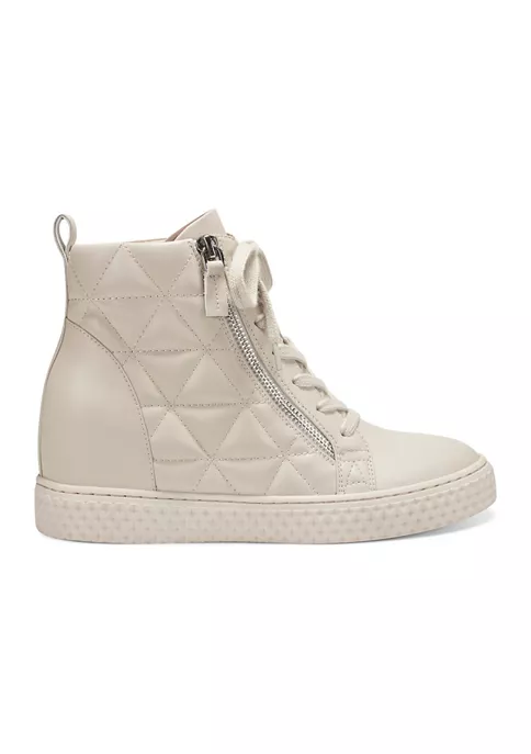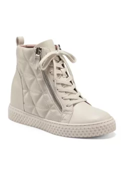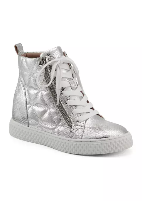 Zipper hardware adds an edgy twist to the Zonta, a sporty high-top lace-up sneaker. Quilting elevates the look as a refined style statement. As part of our new Aerosoles Aware collection, it’s crafted in vegan materials. 1 1/4″ Heel Height. All Synthetic Materials.