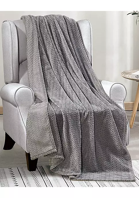 Décor&More Ultra Plush Queen Size Chevron Arrow Jacquard Microplush Blanket (86″ x 86″) – Grey