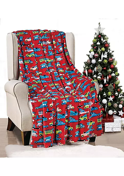 Décor&More Holiday Kids Collection Festive and Cuddly Holiday Microplush Throw Blanket (50″ x 60″) -Red Cars