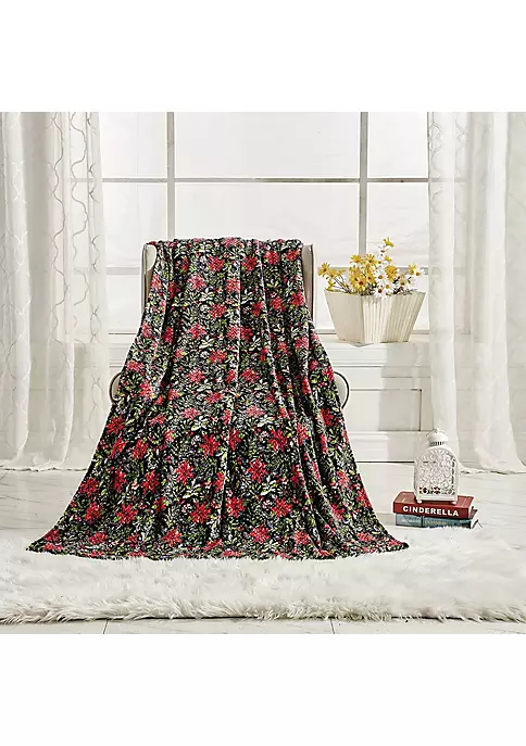 Décor&More Poinsettia Oversized Jacquard Luxe Plush Holiday Throw Blanket (50″ x 70″)