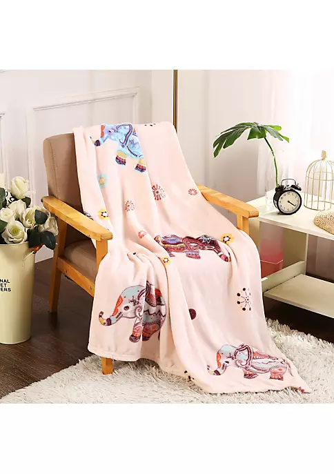 Décor&More Tropical Summer Novelty Velvet Fleece Throw Blanket (50″ x 60″) – Neon Elephant