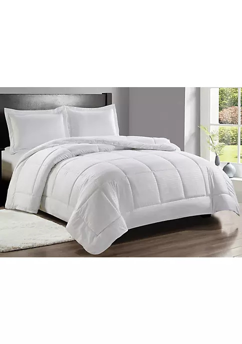 This ultra lush down alternative full/ queen size comforter is quilter and breathable. Measures 86″ x 86.” 100% polyester and machine washable.